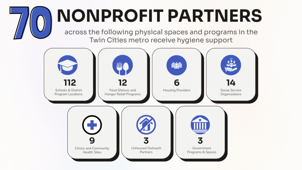 In partnership with Southwest High School’s Laker Locker, 8 additional Minneapolis Public High Schools receive hygiene support through their City of Minneapolis School Based clinics.
